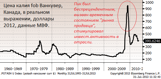 Баумгентнер заявил, что цена калия может упасть ниже $300 за тонну (c 400+ в настоящее время), и что может достигнуть $200, где находятся маржинальные издержки других прозводителей.