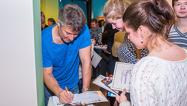 Не успела завершиться экскурсия, как на вернисаж начали подтягиваться деятели искусств, прибывшие на закрытие фестиваля «Текстура»: Ингеборга Дапкунайте, Вениамин Смехов, Эдуард Бояков и другие. Стало понятно, почему владельцы Музея наивного искусства Надежда и Андрей Агишевы назначили вернисаж именно на эту дату и почему Ройзман с такой готовностью сорвался в Пермь: очень уж ему хотелось побыть в этой тусовке, вернуться в привычную богемно-поэтическую среду, иначе говоря — в молодость. И это удалось, пусть ненадолго.