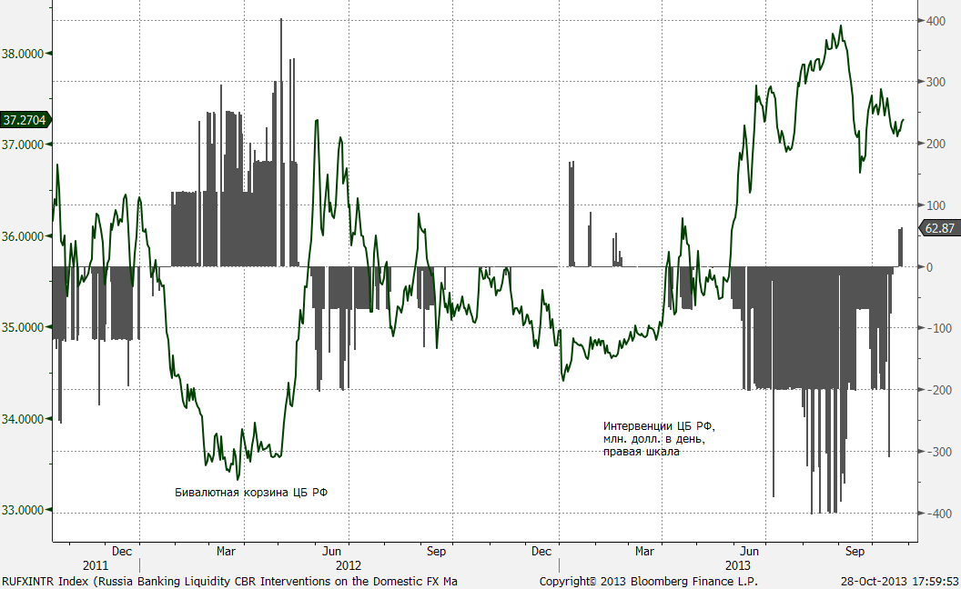 Центробанк РФ уже не способствует укреплению рубля, а напротив ослаблению. На прошлой неделе прошли мизерные интервенции в противоположном направлении.