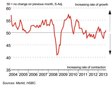 Вышли данные промышленного PMI Китая. Показатель от HSBC за октябрь 50,9, семимесячный максимум. Наблюдается ускорение роста числа заказов по сравнению с сентябрём, когда PMI находился на уровне 50,2. Эти данные подтверждает и официальная статистика, которая показывает индекс на уровне 51.4, что выше ожиданий (51,2) и сентябрьского уровня в 51,1.