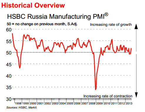 Российская промышленность не так и мертва, значение октября на 52, говорит о росте.