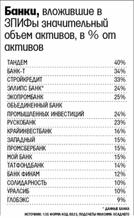 ЦБ решил разобраться с ЗПИФами, которые банки часто используют, чтобы снизить отчисления в резервы. Сами по себе паевые фонды являются важным инструментом коллективного инвестирования, альтернативным традиционным банковским операциям. В частности преимуществом является то, что доходы не облагаются налогом на прибыль, пока не будут выведены из фонда. Однако банки часто переводят туда неработающие кредиты, залоги, рискованные активы. Отчисления в резервы при этом небольшие — 127 крупнейших банков, имеющих 611 млрд. руб. активов в ПИФах, начислили на них лишь 34 млрд. руб. резервов (5,6%). С января же ЦБ предлагает расценивать вложения в ЗПИФы, если банк может их контролировать или оказывать на них существенное влияние, как вложения в дочерние организации. Точного понимания какие ПИФы считать подконтрольными пока нет. В крайнем случае, банки могут перерегистрировать фонды на другого собственника (продать паи, но для этого надо найти покупателя). Если же ЦБ всё-таки удастся добиться своего, у ряда банков может ощутимо уменьшиться капитал (см. таблицу ниже).