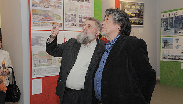 Среди проектов галереи рядом находятся две работы, подписанные одной и той же фамилией, но авторы у них разные: это проект заведующего кафедрой архитектуры академии Виктора Щипалкина и проект его дочери, студентки Виктории Щипалкиной. «У дочки-то поинтереснее работа», — шепчутся посетители.