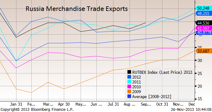 Мы также полагали, что экспорт товаров из России имеет меньшую сезонность и скорее, наоборот. В связи с отопительным сезоном в северном полушарии, большими продажами газа объемы валютных поступлений января-февраля должны были быть выше. Это является главной причиной, почему мы ждем укрепления в начале года.