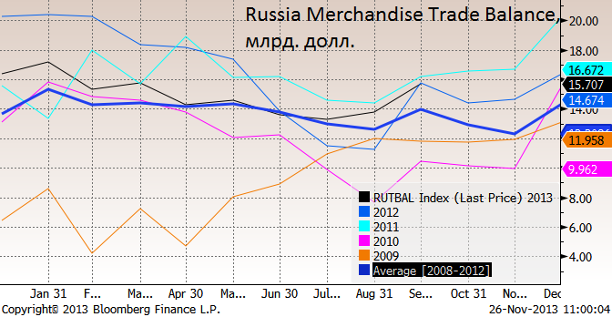 Есть ли сезонность торгового баланса РФ?