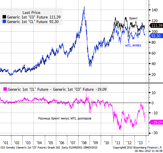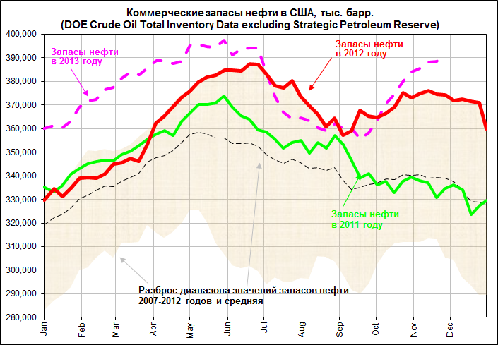 Цены на нефть падают в США и остаются стабильными в других частях света. Это связано с тем, что в США происходит затоваривание, как видно по графику запасов. Рынок США остается изолированным, рост производства сланцевой нефти, проблемы экспорта приводят к заметному отклонению цен.