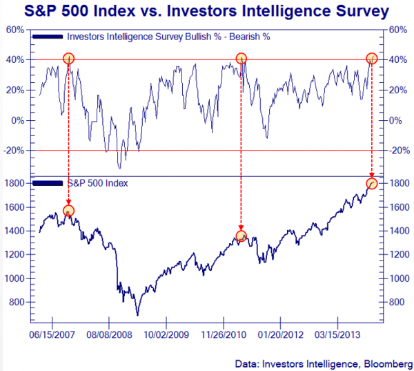 Оптимизм инвесторов («irrational exuberrаnce») поднялся до максимальных отметок, что может привести, как минимум, коррекции.