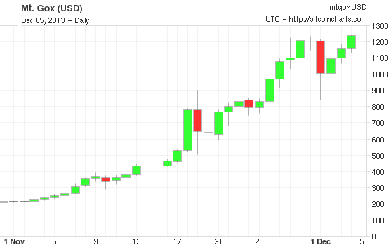 На рынке частной криптовалюты bitcoin продолжается надувание. Один bitcoin практически сравнялся со стоимостью одной унции золота, которое продолжает падать. Золото — другой пузырь, но в другой фазе, сдувающийся ($1239/унция, жир минус 35% с ноября 2011 г., когда цена доходила до $1921 за унцию).