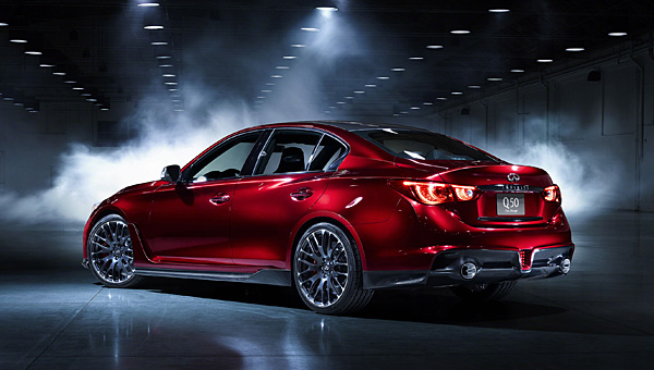 Ещё один долгожданный концепт — это Infiniti Concept Q50 Eau Rouge. Машина удачно сочетает в себе конструкцию дорожного автомобиля и гоночный дизайн. Аэродинамическое оборудование и элементы дизайна спорткара созданы при участии команды F1 Infiniti Red Bull Racing. Под капотом — бензиновый V6 с двумя турбинами, развивающий около 500 лошадиных сил. Разгон до «сотни» — 4 сек.