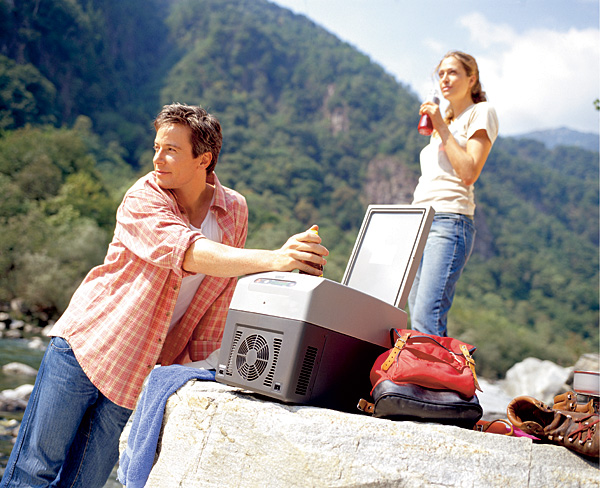 Бывают они двух типов — компрессорные и термоэлектрические. Первый тип — младший братец домашнего агрегата. К его плюсам можно отнести низкую температуру внутри камеры, возможность быстрого охлаждения тёплых или нагретых продуктов, наличие плавной регулировки температуры. Минусов немного — приличный вес и неслабая стоимость.
