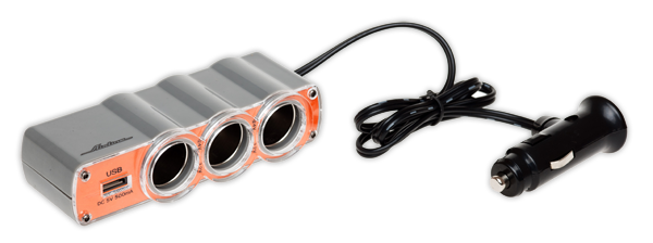 Ни о чём не забыли? Ах, да! Если в машине живёт такое количество гаджетов, то «еды» им точно хватать не будет. Прикуривателей-то не двадцать штук в автомобиле. Тут нас выручит разветвитель. По сути дела, тот же самый тройник-удлинитель, которыми мы частенько пользуемся в повседневной жизни, чтобы подключить к одной розетке несколько электроприборов. Копеечное устройство, но приносит много пользы.