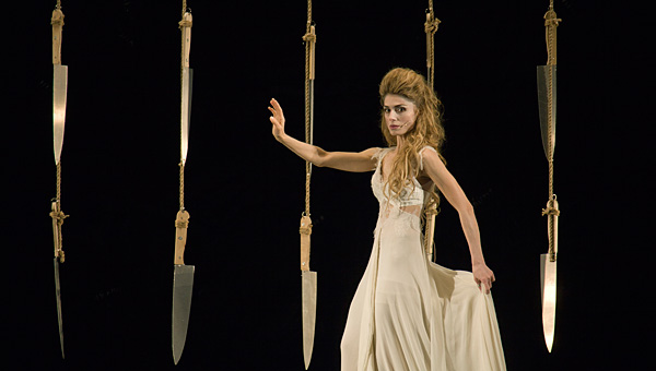 Гирлянды из гробов и ножей, созданные легендарным Яннисом Кунеллисом, виднейшим представителем и одним из основателей arte povera; движения актёров на сцене, текст, костюмы — всё это части некой конструкции, посвящённой теме смерти. Музыка — тоже часть инсталляции, недаром оркестранты в финале представления покидают оркестровую яму и вливаются в похоронную процессию Персефоны, а после остаются на сцене для поклонов — ведь они тоже были частью перформанса!