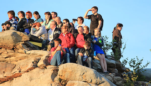 Все стремятся запечатлеть фантастическое зрелище, но даже профессиональным фотографам это удаётся далеко не всегда. Они приезжают на гору не просто поработать — они откликаются на профессиональный вызов: не так-то просто запечатлеть во всём колористическом богатстве закат, да ещё так, чтобы на его фоне не потерялись фигуры танцующих.