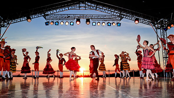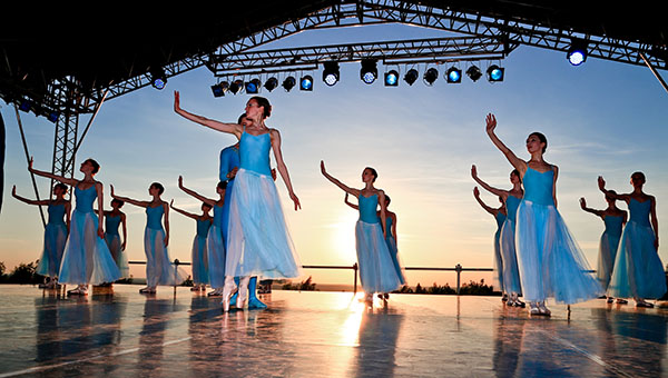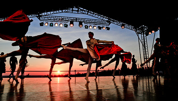 Арена ди Верона, фестиваль в Брегенце, Принсенграхт в Амстердаме, израильская Масада, дворец и парк Шёнбрунн в Вене… Наконец, знаменитейший «симфонический пикник» Вальдбюне, который ежегодно устраивает Берлинская филармония на закрытие сезона — примерам несть числа. Но «Балет на закате» — ноу-хау Пермского края — от всех «коллег» принципиально отличается. Как правило, в подобных акциях совмещают рукотворный ландшафт — дворцы, античные амфитеатры, старинные крепости, парки, каналы — и оперную постановку или симфонический концерт. Но дело происходит в Пермском крае, а это — Парма и балет.