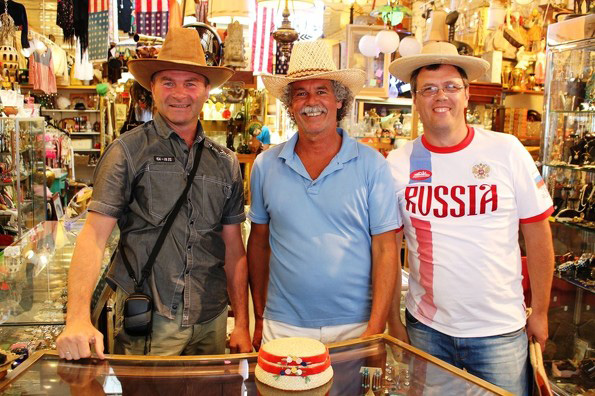 В Санта-Барбаре Валерий Смолюк (на фото — слева) и Олег Уваров (на фото — справа) наткнулись на антикварный магазин, где приобрели четыре замечательных шляпы, преимущественно датируемые 1940—1970 годами. Среди них — дизайнерская женская шляпка, украшенная искусственными цветами и лентой, шляпа, выполненная в традиционном ковбойском стиле, и ещё две шляпы середины ХХ века. Они достойно представят Калифорнию в создающемся Музее головных уборов. Очень известный среди местных коллекционеров антиквариата продавец, узнав о том, что покупатели приехали аж из России, предложил сфотографироваться на память.