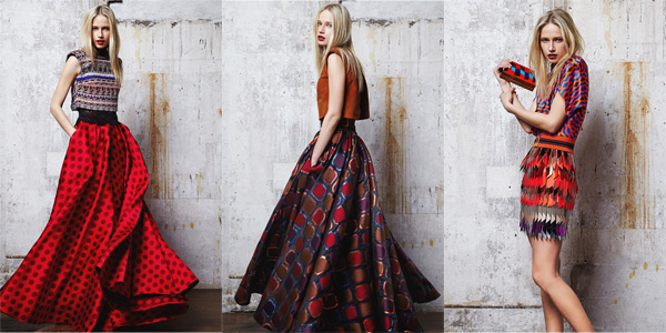 Весьма умеренная и очень женственная эксцентричность у Stella Jean — смесь фантастического и богемного. Хороший рецепт, как приспособить весь этот карнавал к обычной жизни, не заигрываясь в косплей и комедию дель-арте. Хорош и в меру пёстр Talbot Runhof...