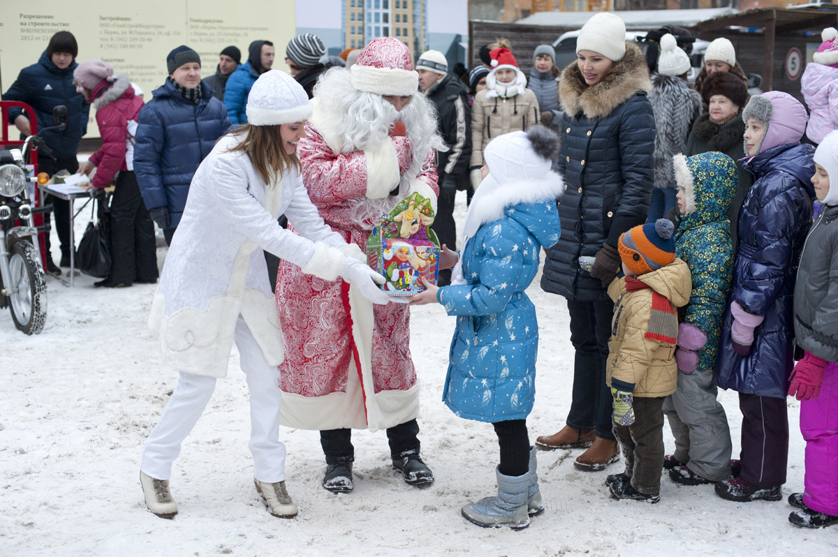 Для детишек прошла специальная программа. Маленькие жители Перми приняли участие в весёлых конкурсах, аттракционах, водили хоровод. Каждый ребёнок получил новогодний подарок, а всей детворе «ГлавСтройИндустрия» преподнесла большой общий сюрприз — горку для катания.