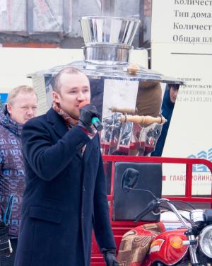 Развлекать гостей приехали иллюзионист и клоуны. Организаторы учли, что на дворе зима, и привезли огромный самовар: чтобы никто не замёрз, всех угощали чаем, баранками и пряниками.