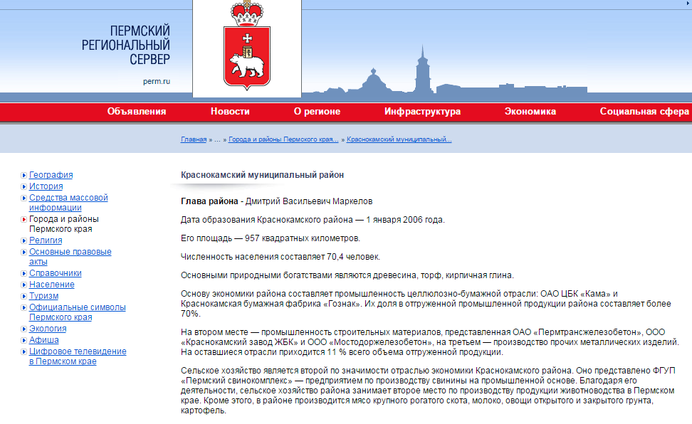 Хотите подтверждения? Извольте. В разделе «города и районы Пермского края», призванного давать предельно официальную справочную информацию о муниципальных образованиях региона, царит давняя история. Так, согласно данным perm.ru, Добрянским районом по-прежнему руководит Владимир Варлыга, Чайковским — Сергей Пластинин, Лысьвенским — Александр Гончаров, Березниками — Андрей Мотовилов, а Кизеловским районом и вовсе Игорь Штэник. Список можно продолжать.