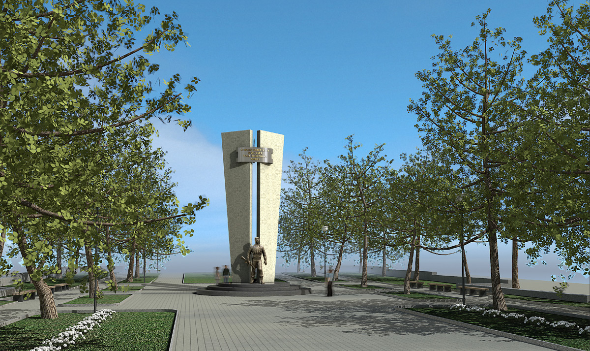 Первым и самым серьёзным вопросом было согласование эскизного проекта и места установки мемориала «Солдату России» в сквере Советской Армии — на пересечении улиц Сибирской и Швецова.