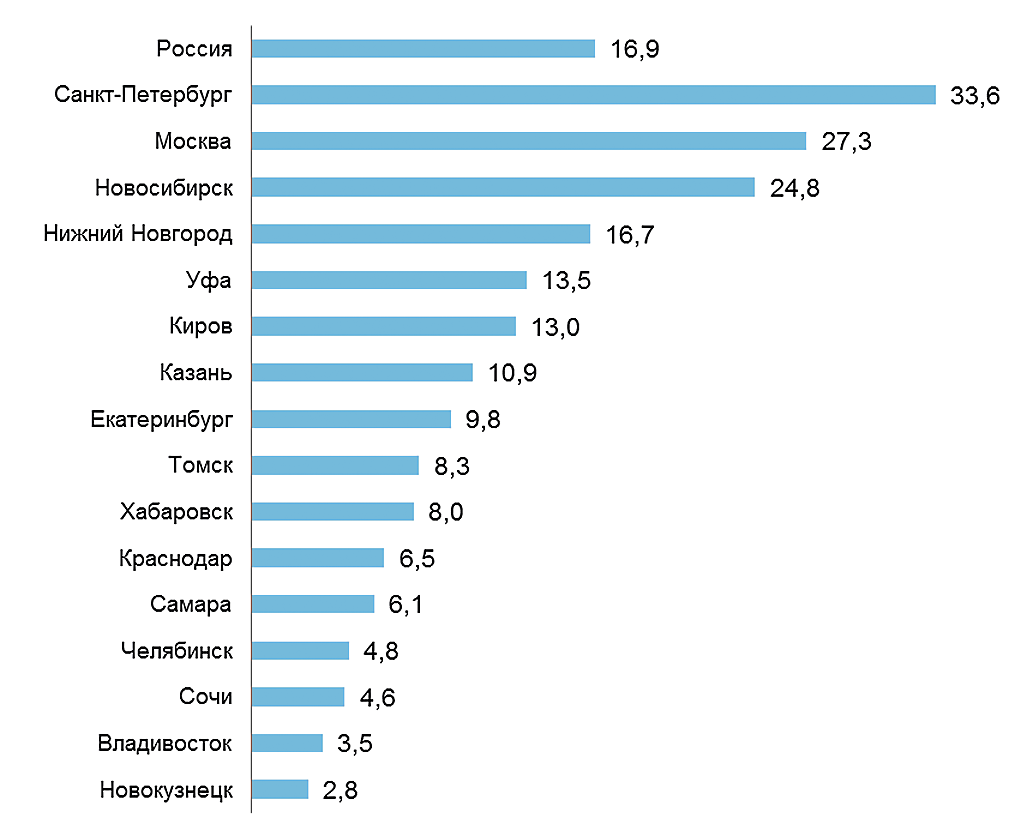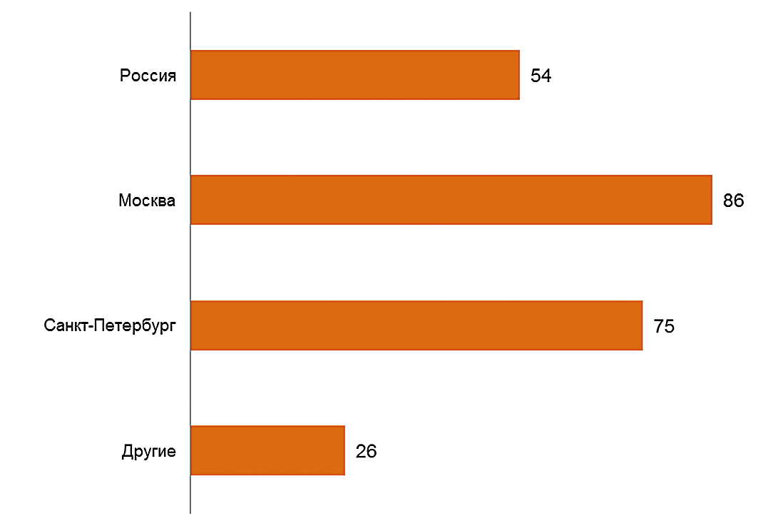 Наибольшая конкуренция в журналистике за одно вакантное место сейчас в Москве, Санкт-Петербурге и Новосибирске.