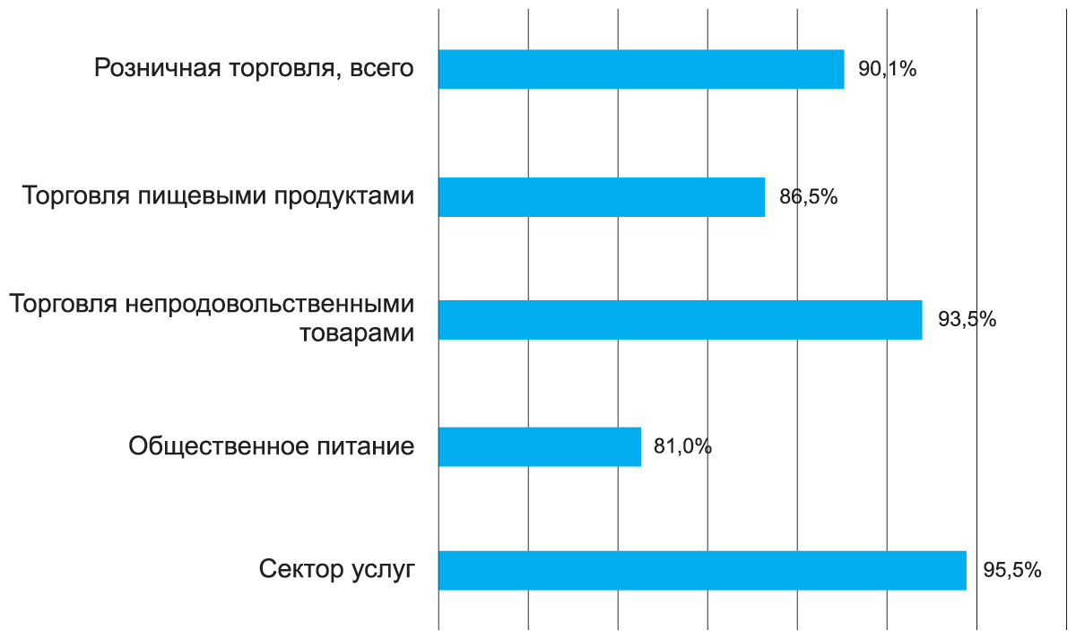 Оборот общественного питания за тот же период сократился ещё сильнее: примерно на 20%.