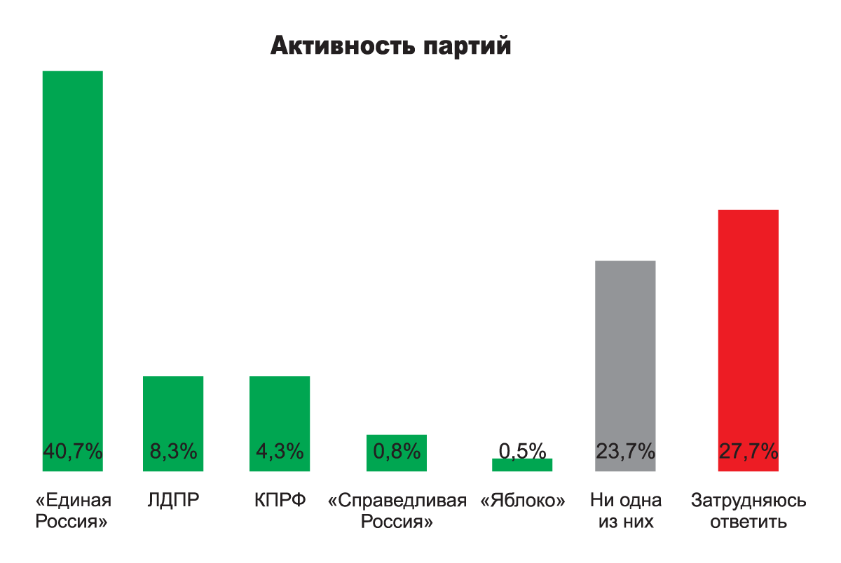 Помимо всего прочего пермяки ответили на вопрос: «Как вы считаете, деятельность активистов каких партий наиболее заметна в Перми и Пермском крае?»