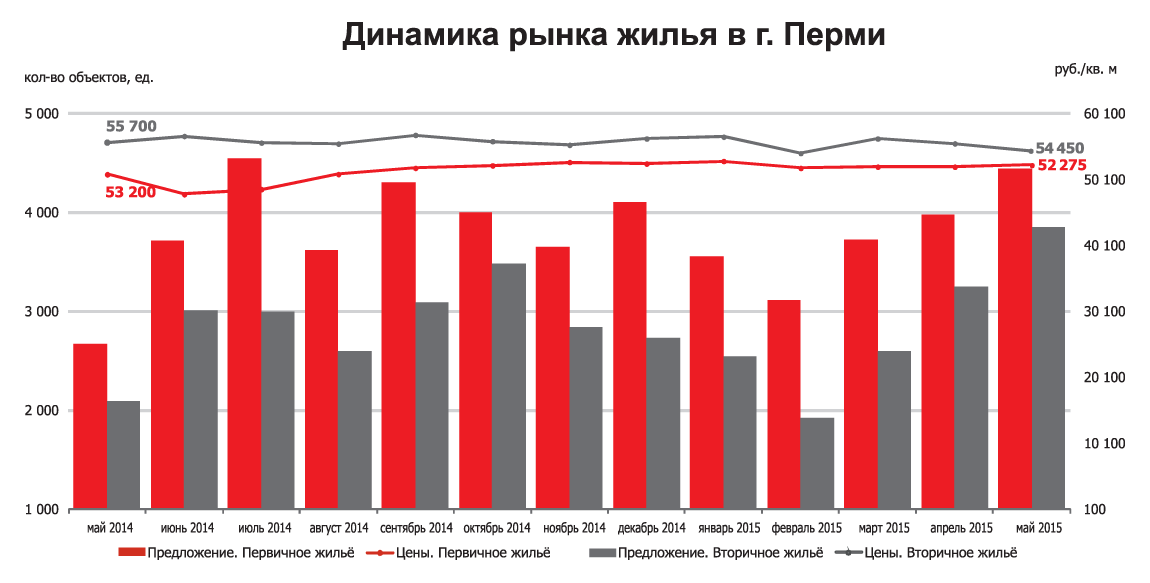 По данным Пермской мультилистинговой системы, объём предложения новостроек Перми по итогам мая увеличился на 17,5% до 4339 квартир. Число предлагаемых объектов на вторичном рынке жилой недвижимости составило 4042, что на 30,2% выше показателя предыдущего месяца.