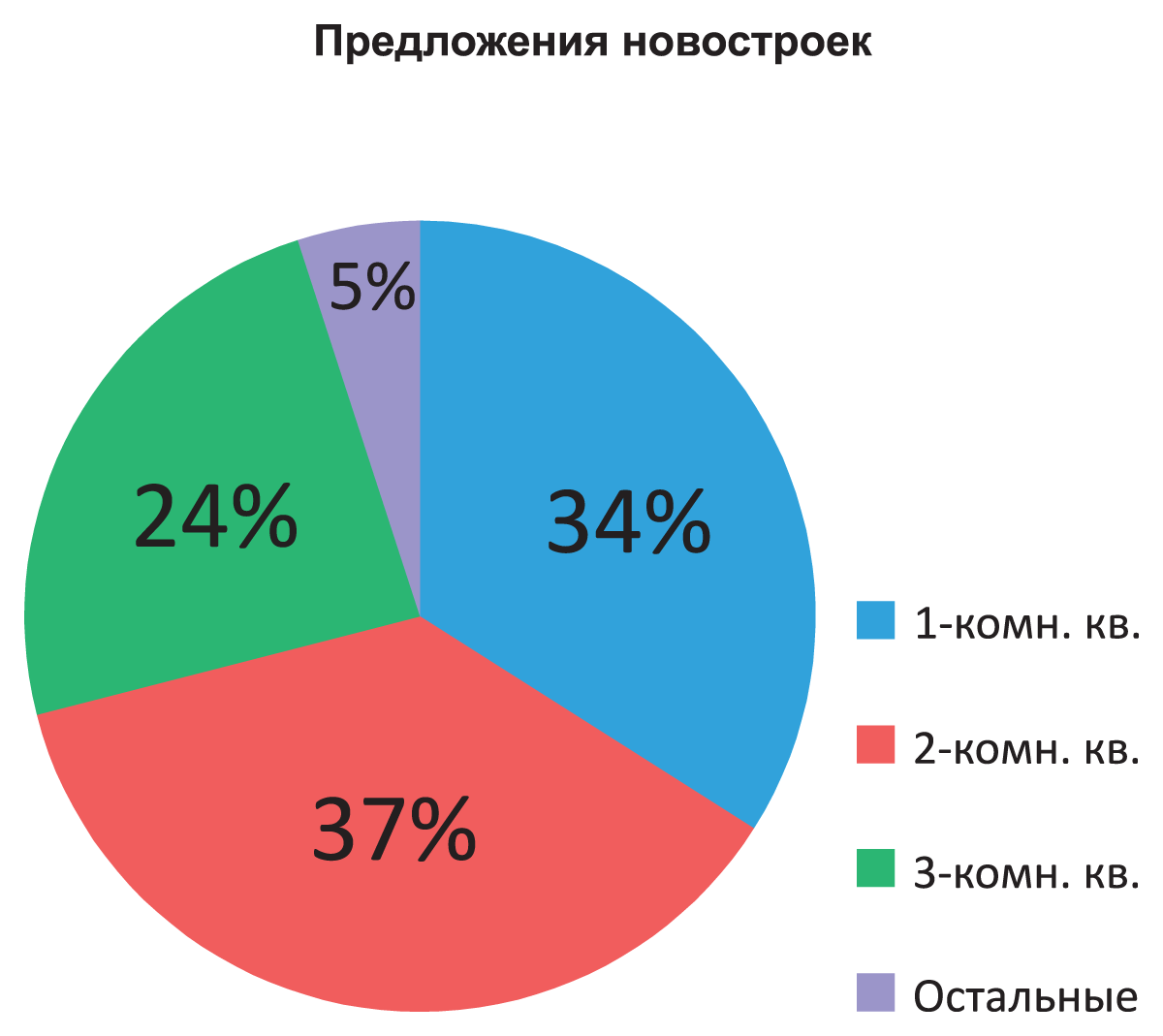 По размеру площади экспозиция предлагаемого к продаже жилья пополнилась на 50,5 тыс. кв. м, то есть на 34% от общего объёма предложения, подсчитали в PAN City Group. Максимальную долю в общем объёме новостроек составили малогабаритные высоколиквидные одно- и двухкомнатные квартиры (34% и 37% соответственно). Меньшую долю заняли трёхкомнатные квартиры — 24%. Средняя площадь этих объектов не изменилась и составила 53 кв. м.