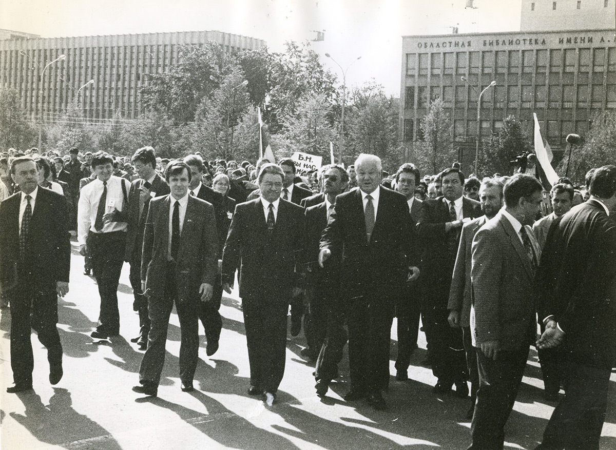 «Когда мы поехали, — вспоминает Геннадий Игумнов, — у меня было очень тревожно на душе: неужели сейчас мы опозоримся перед Президетом — ведь мы всегда так активно поддерживали его». Но всё пространство от ул. Попова до ул. Борчанинова было заполнено людьми. Ельцин пошел в толпу, стал разговаривать, отвечать на вопросы, даже к коммунистам подошёл и сказал им: «Я вас уверяю: не вы будете определять путь, по которому пойдёт Россия».