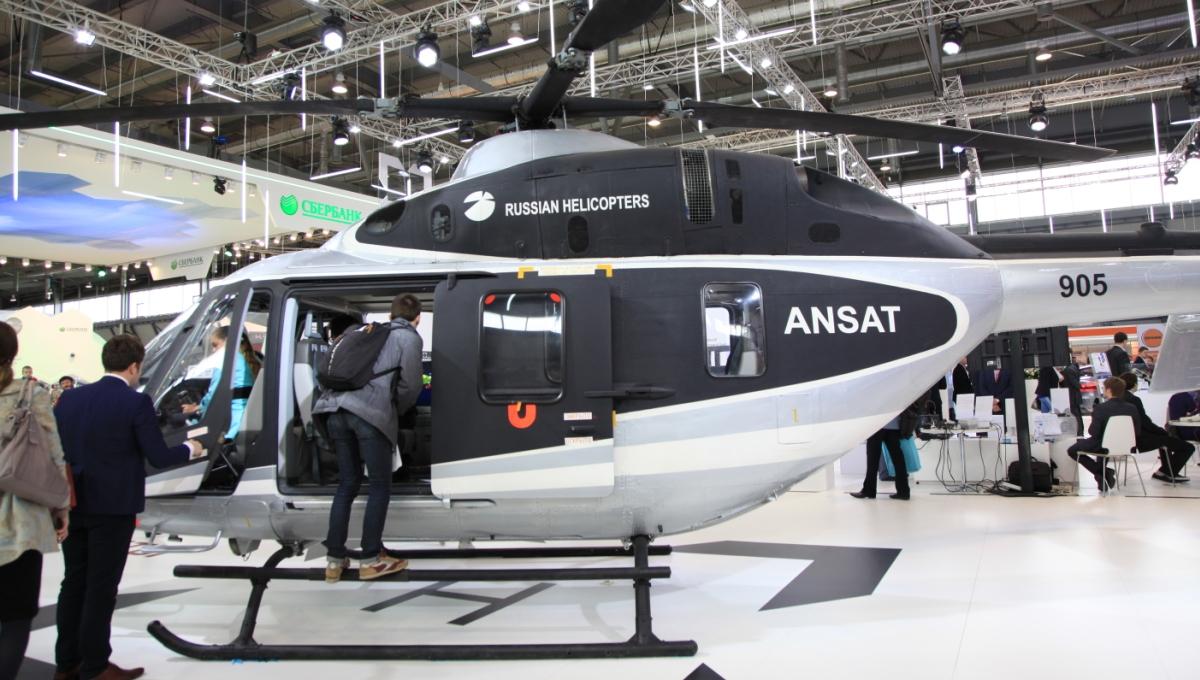 Можно было забраться внутрь вертолёта «Ансат», представленного на выставке также в натуральную величину. Многоцелевой вертолёт разработан и производится на Казанском вертолётном заводе.