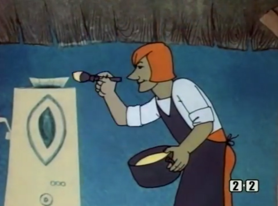 Была у нас история с красками. Одно время всё красили гуашью. Она была сложна в работе: чуть больше воды или чуть меньше, меняется плотность, по-разному сохнет, начинает «гулять» на экране. Картинка как-будто шевелится там, где крашеная. Когда я ездила на студию «Союзмультфильм», спрашивала у них про краски. Мне ответили, что технология очень сложная: необходим специальный клей, гуммиарабик, который закупается в Африке за валюту. Я у них попросила один листочек с рисунком к мультфильму и, вернувшись в Пермь, отнесла его на наш лакокрасочный завод. Попросила сделать хорошую краску для мультиков. Мне пообещали. Не знаю, брали ли они те краски с листа на анализ или как-то иначе поступили, но краску сделали. Мы её опробовали на мультфильме «Май-мастеровой, необыкновенная машина и король-вояка». Это был первый цветной пермский мультик. Из него вырезали множество сцен, где король бегал, прыгал, пел, танцевал. Пермское начальство увидело в нашем мультфильме «пропаганду войны». Сказали, что не повезут в Москву в таком виде. Пришлось сильно резать.