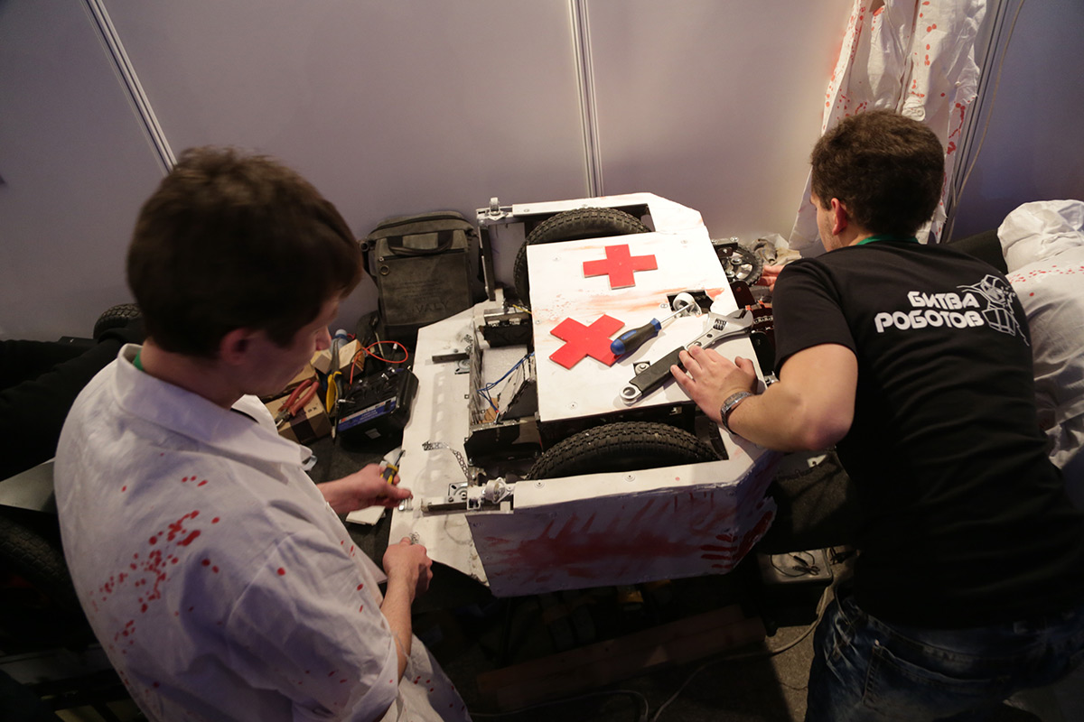 «Это первая битва роботов, и все инженеры сталкиваются с такими условиями впервые. Невозможно предугадать бой: ты можешь не завести робота, у него может сгореть электроника, сесть батарейки, ещё что-то произойти. Тем и хороши битвы роботов — непредсказуемым результатом», — прокомментировал ситуацию организатор битвы роботов, руководитель компании Promobot Алексей Южаков.