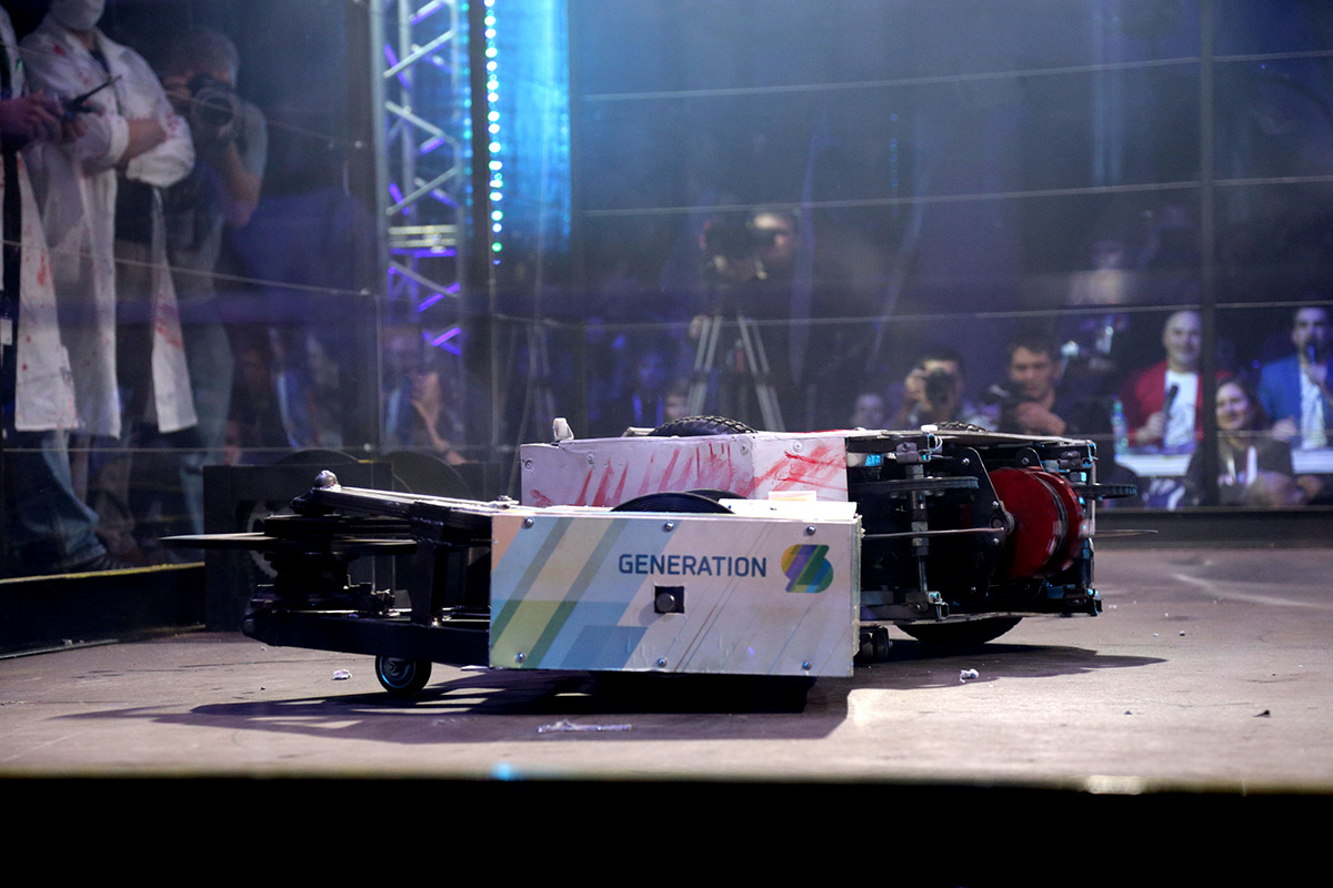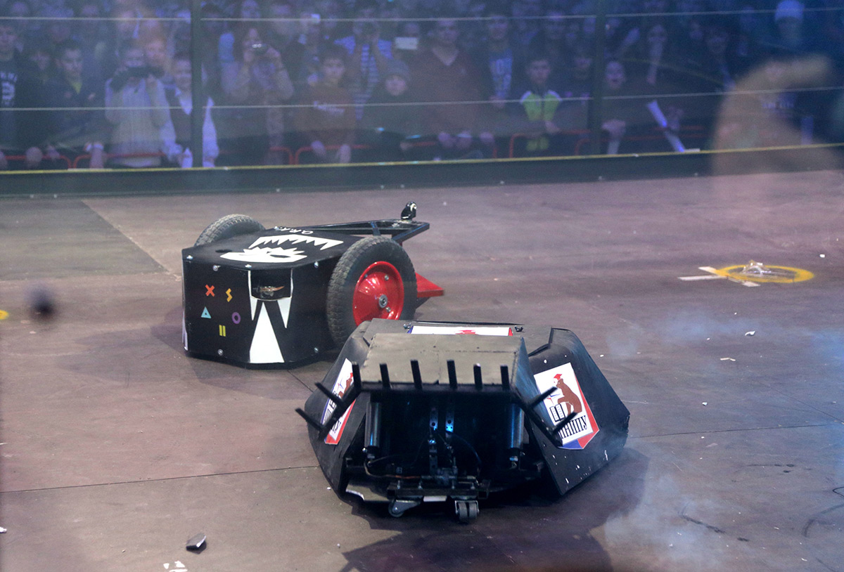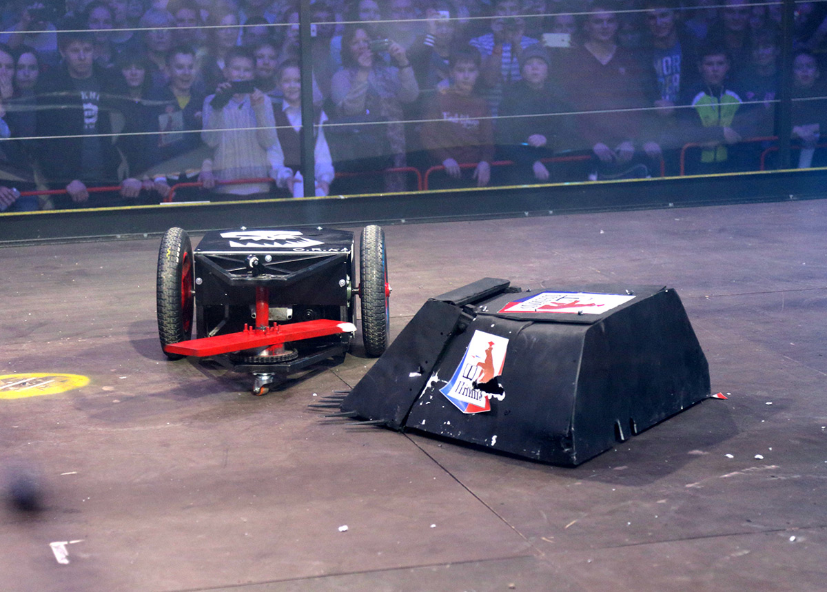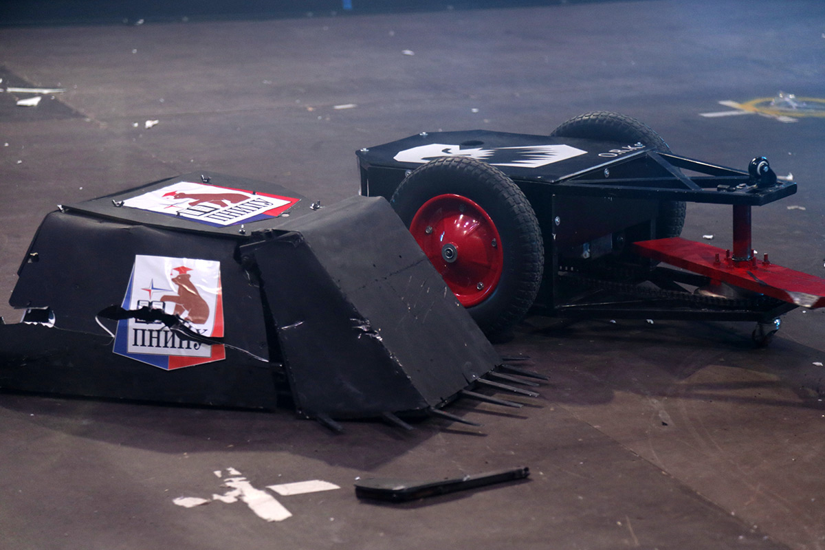Немалое напряжение дал и первый бой. Какое-то время зрители могли делать ставки, состоится ли он в принципе. Одна из машин, оснащённая в качестве орудия «социалистической балкой», как это назвали разработчики, упорно не хотела двигаться. Так что первое сражение завершилось техническим поражением команды «Кинетик» с вердиктом судей: «Победил робот, который двигался!»