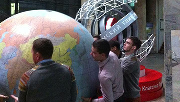 Мы хотели установить глобус в фойе нашего корпуса, но это не удалось из-за требований пожарной безопасности.