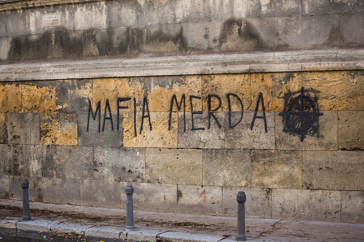 На некоторых кафе Палермо можно увидеть стикер, сообщающий, что заведение не платит деньги мафии (деньги, если их заплатить мафии, называются pizzo) и находится под защитой сообщества Addiopizzo. Addiopizzo — в буквальном переводе «До свидания, pizzo». Возможно, отсутствие такого стикера означает, что заведение деньги мафии платит и не знает о таком простом решении проблемы. Скорее всего, чтобы избавиться от рэкета (это тоже итальянское слово, ricatto — шантаж), всё же просто вывесить табличку недостаточно. Тем не менее сайт сообщества утверждает: «Все, кто платят pizzo — люди без достоинства». Допускаю, отчасти это происходит из-за того, что заведения со стикерами принадлежат мафии и поэтому не хотят платить деньги сами себе.