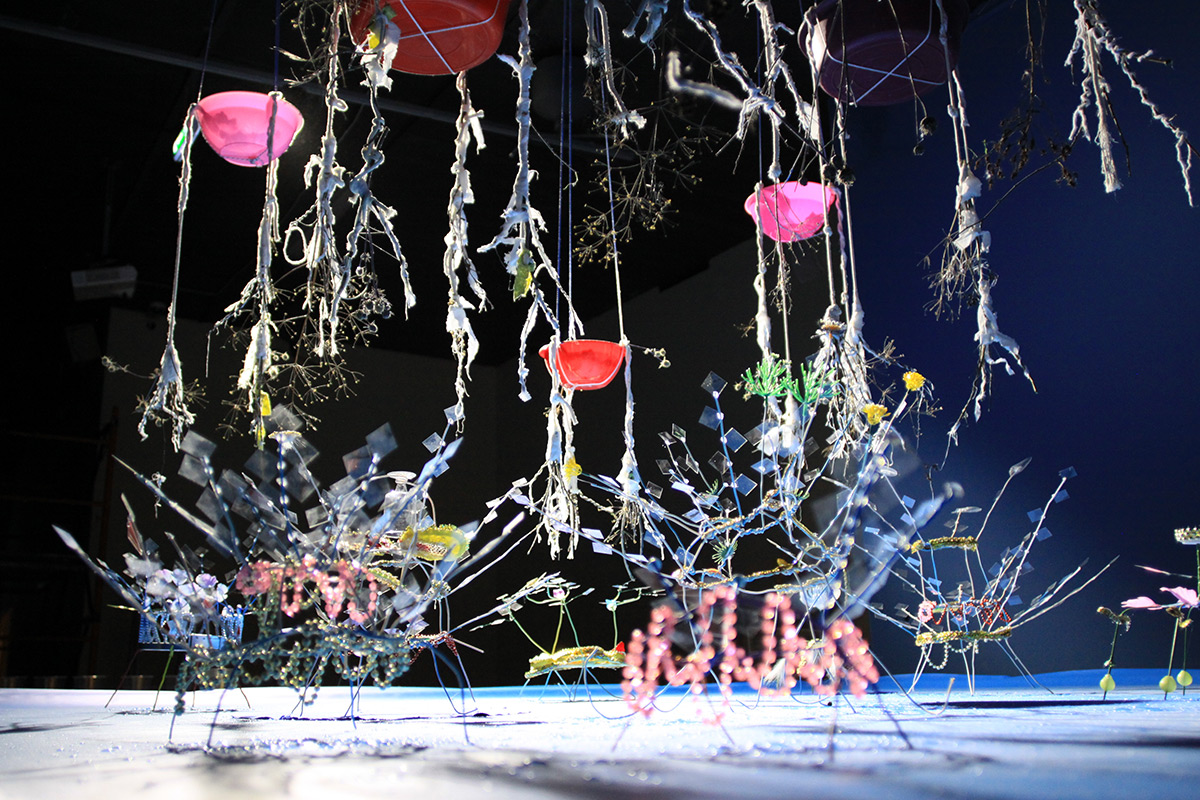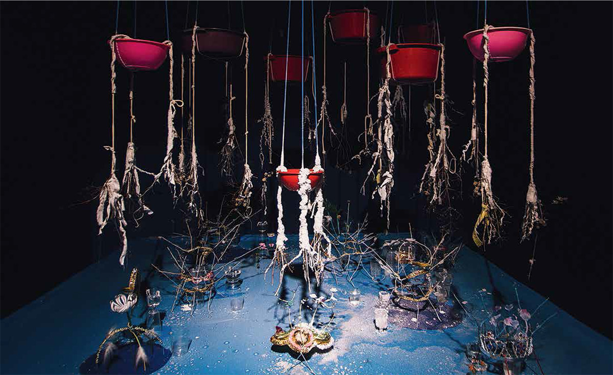 Герда: У нас есть и живые растения, и засушенные, и искусственные. Всё вперемешку. Часть этой среды — росписи стен, которые тоже показывают пейзажи, но скорее воображаемые — мечты или видения, а не реальную действительность.