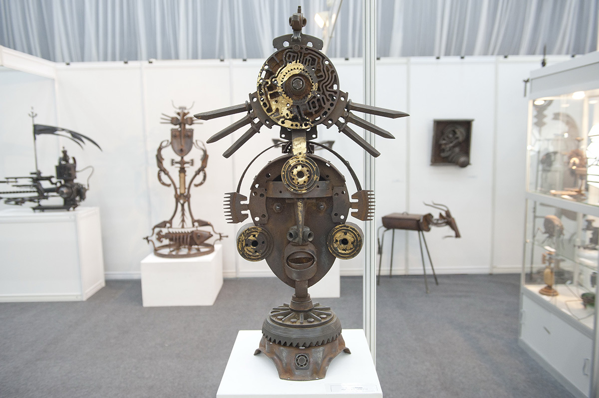 Невозможно не обратить внимание на персональные стенды популярных героев пермской художественной жизни, таких как, например, керамист Наталья Корчёмкина, выставляющаяся традиционно совместно с Инной Роговой, или скульптор Рустам Исмагилов со своими знаменитыми «железяками», среди которых есть совсем новые и очень выразительные — например, пермский «медведь в жертвенной позе», созданный из лопаты и каких-то сельскохозяйственных лезвий.
