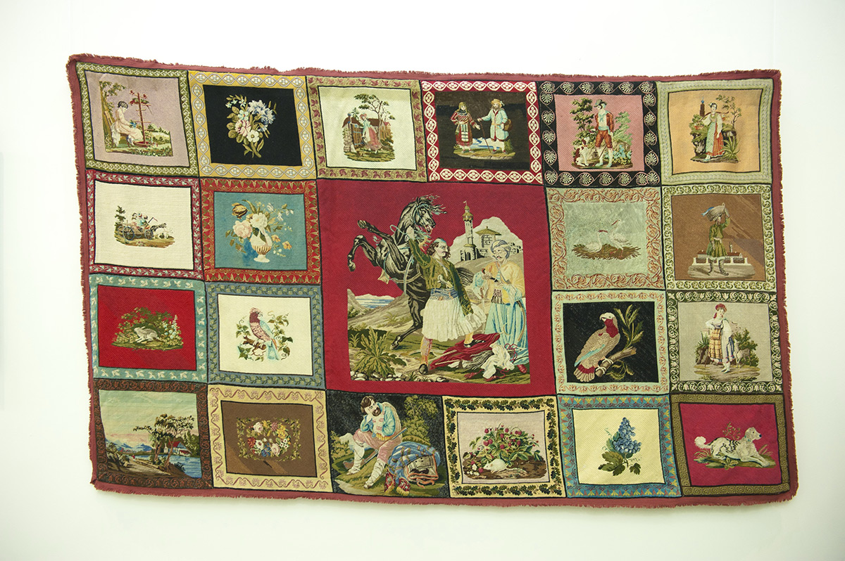 Вышивка бисером, бисером же отделанные чубуки, маленькие кошельки и ридикюли в следующем зале — XVIII и XIX веков. Дамы обожали мотивы «символические», с тайными признаниями в любви — толкования символов они брали из старинной голландской книги, привезённой в Россию ещё при Петре I.