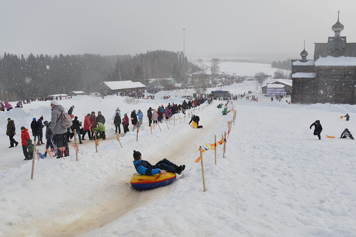 Пробки на подъезде к музею были грандиозные — даже больше, чем во время фестиваля «Камва». Количество посетителей перекрыло прошлогодний рекорд — более 7000 человек. Потомившись в очереди, всё же каждый находил место для парковки. На территории музея фольклорные представления, мастер-классы и «богатырские забавы» были предложены в изобилии, так что каждому нашлось занятие. Впрочем, далеко не все этими предложениями воспользовались: гости, которые прибывали сплошь большими семьями или компаниями, подошли к мероприятию самым здравым образом, решив использовать столь прекрасный день в столь прекрасном месте на полную катушку в прямом и переносном смысле: разноцветные комбинезоны, «ватрушки», «ледянки» и снегокаты, термосы с чаем, сумки с едой для пикника… Народ приехал покататься с самой длинной в Пермском крае 80-метровой горки, поваляться в чистом, нетронутом городским смогом снегу и поесть блинов!