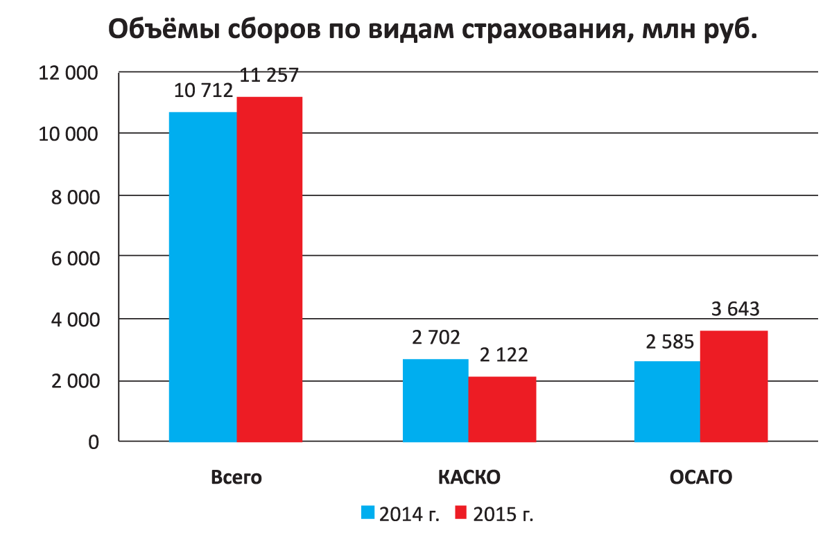 В результате резкого роста тарифов и, соответственно, объёма собираемых по ОСАГО премий доля этого вида страхования в общем объёме сборов увеличилась с 24% в 2014 году до 32% в 2015-м. Если вдуматься, уже один этот факт говорит об уровне развития регионального страхового рынка. Ещё раз: треть всех взносов приходится на один из обязательных видов страхования.