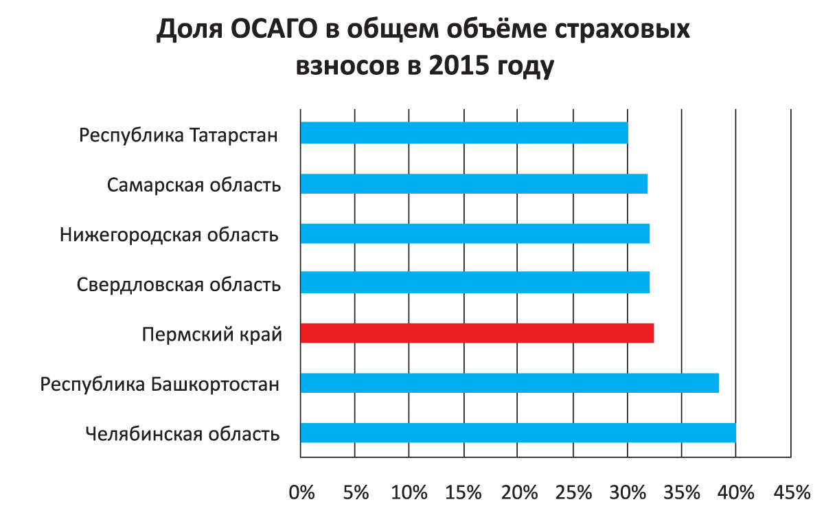 В течение 2015 года объём собранных страховых премий в Пермском крае увеличился на 5% к предыдущему году — до 11,3 млрд руб. Об этом свидетельствуют данные Центрального банка России. На автострахование приходится половина всех собираемых в регионе премий. Впрочем, за этими цифрами не стоит реальное развитие рынка.