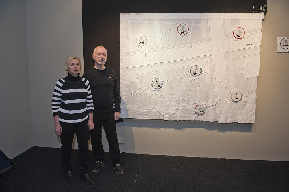 Свои «карты» представили художники Ольга Субботина и Михаил Павлюкевич. Объект «Территория, точка зрения» являет иллюзорные воспоминания не то об Усолье, не то о других маленьких городках. Сами художники отмечали, что этот образ скорее собирательный. По рисунку из скопления точек перемещаются белые фигурки людей, неопознанные, как и город-призрак, составленный из жжёных спичек.
