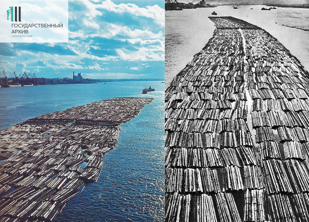 Плоты-гиганты были на Каме и раньше — до революции. Правда, размером они были гораздо меньше, однако фурор производили больший. Прибытие плотов с верховьев Камы в Нижний было одним из ярмарочных развлечений, наряду с «женщиной-пауком», гадалками, менялами-скопцами и народным театром. На тех плотах обязательно стояла изба, где размещались каюты управляющих, а руль был размером с ворота.