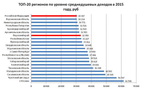 Несмотря на неплохие позиции в сравнении с другими регионами, говорить, что уровень жизни в Пермском крае высок, нельзя. По данным Пермьстата, в середине прошлого года зарплата 10% жителей Пермского края была ниже 10,6 тыс. руб., ещё у 31% она находилась в промежутке от 10,6 до 21,8 тыс. руб.