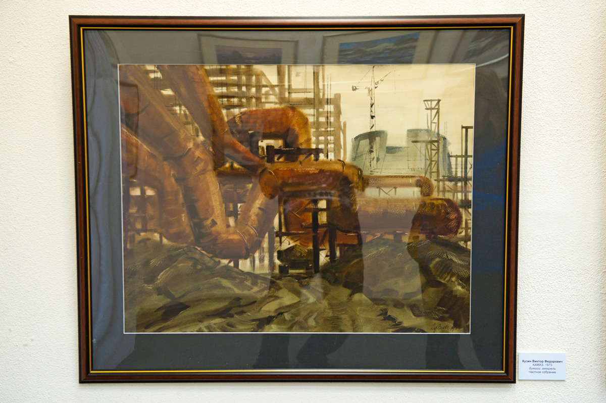 Считается, что индустриальный пейзаж — это соцреалистический «мутант», созданный для прославления «человека труда» и коммунистических идеалов. У Кузина, работавшего в этом жанре как раз в годы господства коммунистической идеологии, всё не так. Его «КамАЗовская» серия, многие значительные листы из которой можно увидеть в Доме художника, — это чуть ли не предупреждение об угрозе.