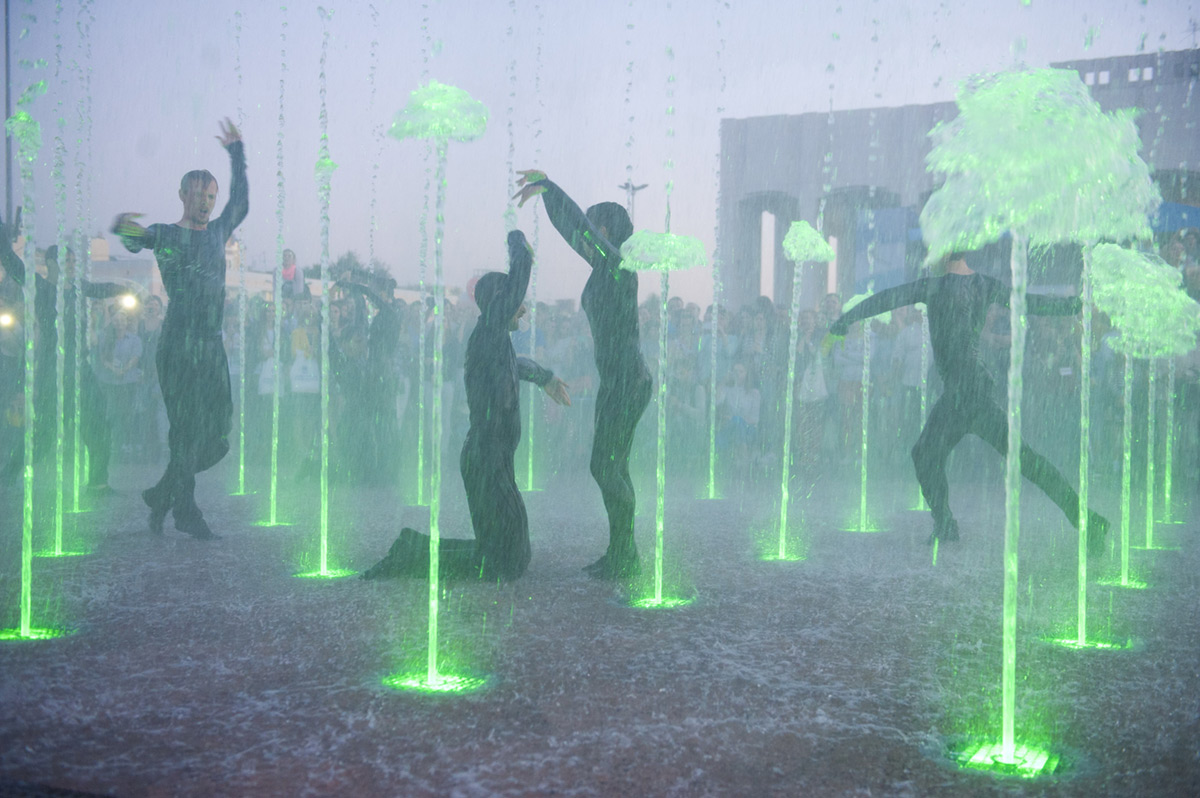 Разумеется, невозможно было бы пережить эту ночь, если бы в кастинге не объявляли перерывы. Толпа зрителей выходила на площадь перед театром, чтобы полюбоваться ещё одним невиданным зрелищем — танцами в фонтане. Балетная труппа театра исполняла сюиту из мюзикла «Алые паруса» прямо среди струй светомузыкального фонтана. Он и сам по себе красив, а с балетом получилась самая настоящая сказка, которая благодаря смартфонам и планшетникам разошлась сотнями снимков и видеофрагментов по социальным сетям.