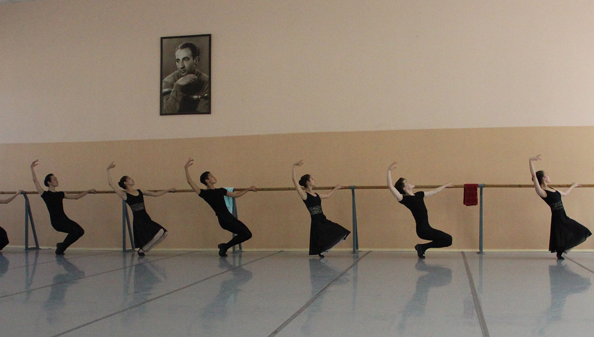 На экзамене 17 человек, группа интернациональная и очень дружная — здесь студенты из Африки, Англии, Аргентины, Монголии, Японии, России. Под строгие и участливые реплики педагога Ольги Васильевны Петуховой начинают танцевать. Короткие номера и такие же короткие передышки. По улыбкам на лицах кажется, что молодые артисты танцуют легко и беззаботно, но по мокрым полотенцам, которыми ребята вытираются в перерывах, можно судить, какой это труд.