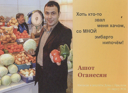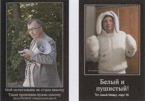 Продолжение темы плакатных войн отражается в размышлениях студентки Тюменского госуниверситета Анастасии Смолыгиной о «чёрном пиаре». Она пишет, что выборы губернатора Тюменской области 1997 и 2001 годов вошли в историю как «самые грязные». Кроме вполне стандартных ложных обвинений в «нечистых» листовках и СМИ «грязным» политтехнологам пришлось проявить немалую изобретательность. К примеру, слоган Сергея Собянина «С.С.С.», означавший «Собянин, союз, справедливость», противники истолковали как число зверя. Не чужд кандидатам и символизм — использование мостов как некая попытка «примирить берега», о чём писал профессор ВШЭ Александр Скиперских.