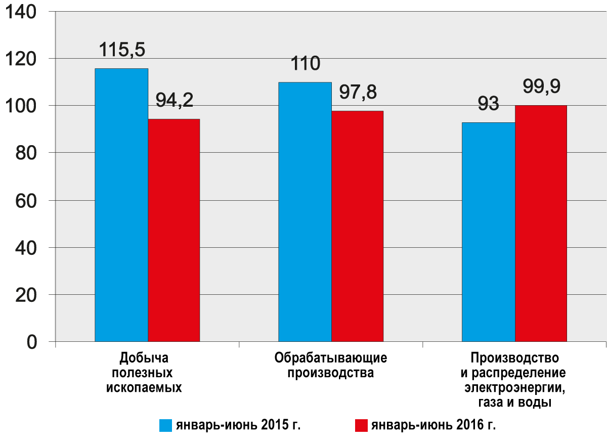 Тезис о грядущей потере нефтяных доходов также достаточно убедителен: добывающая промышленность переживает нелёгкие времена. С самого начала кризиса эта отрасль показывала исключительную положительную динамику, например, в 2015 году её индекс отгруженной продукции составлял 119,1%. Но в первом полугодии ситуация иная: начался спад, индекс отгрузки к аналогичному периоду прошлого года — 94,2%.